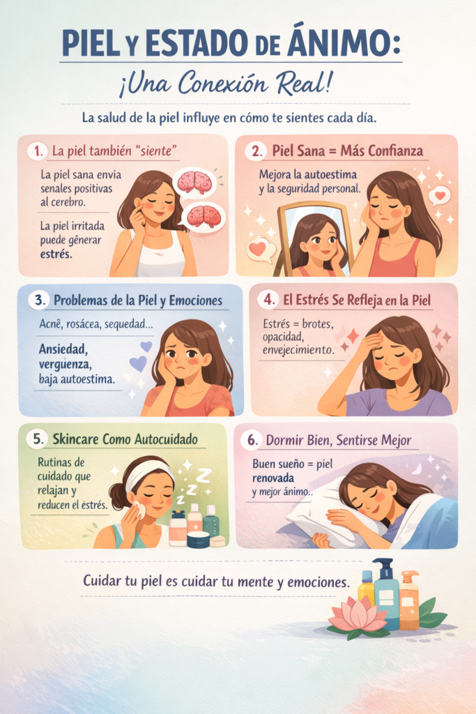 Su estado influye en cómo nos vemos, en nuestra confianza y en nuestro ánimo diario. Cuando la cuidamos, no solo mejora su apariencia, también nos regalamos calma, bienestar y una mejor conexión con nosotros mismos. Cuidar la piel es una forma de autocuidado emocional.