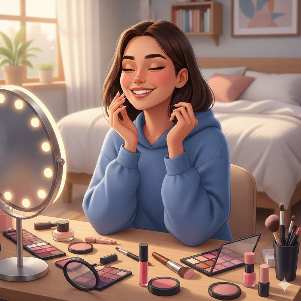 Aunque no parezca, maquillarse es una forma de atención. Estás tan concentrada en que el delineado quede igual o en difuminar bien la sombra, que tu cerebro apaga el chip del trabajo y el estres.